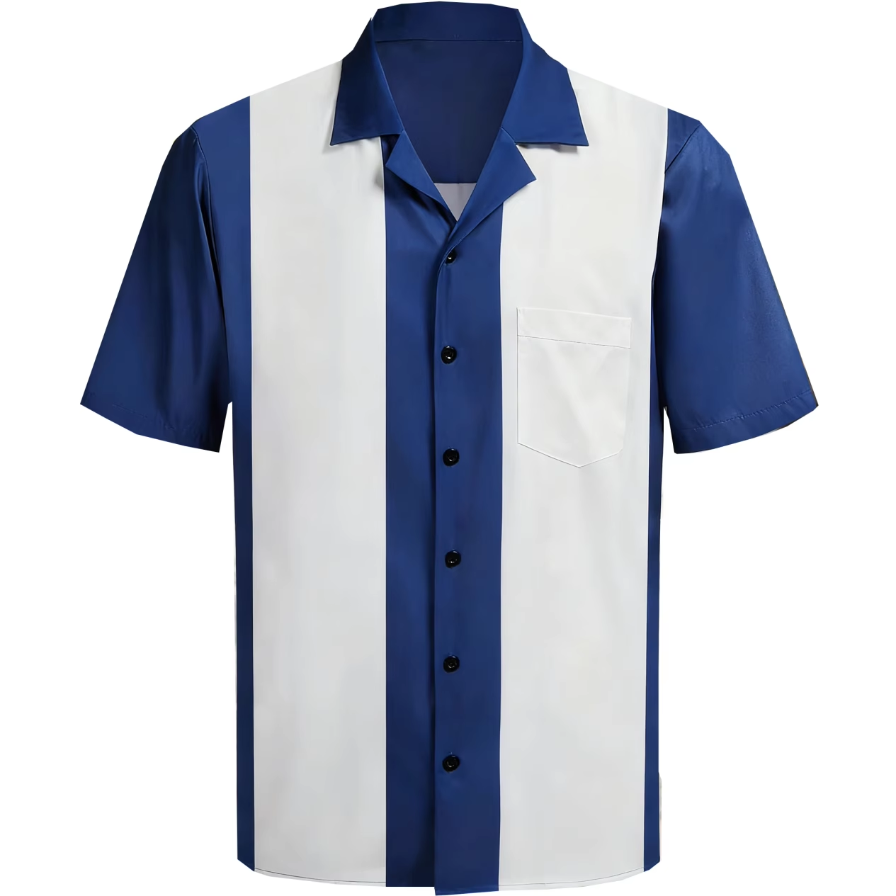 Available in sizes Small to XL , this blue and white bowling shirt is ideal for tenpin bowling competition or for day to day wear.