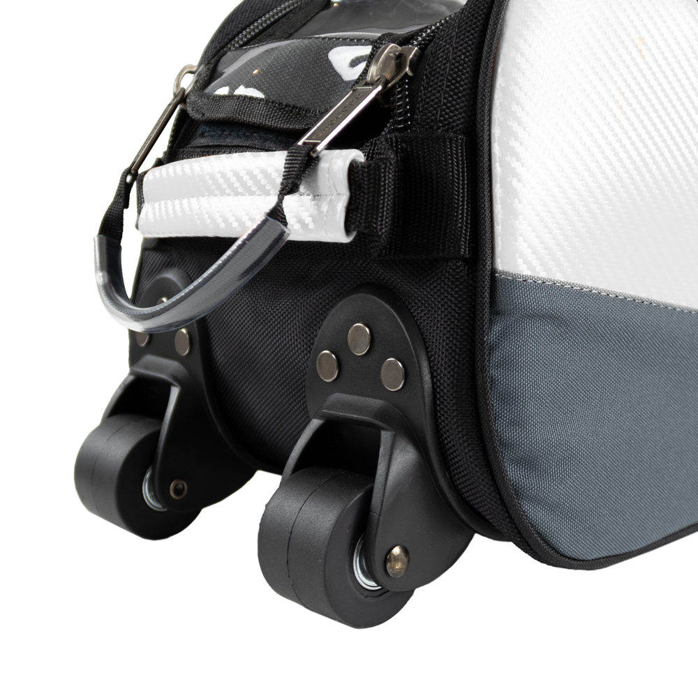 Available in two stylish colourways, the Tote includes roller wheels, and is designed for easy portability, it rolls smoothly and includes a padded shoulder strap and rugged tote handle for comfortable transport. The clear view top gives an easy view of the balls being carried, while oversized zippers ensure secure closure.
